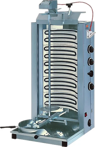 Дополнительно поставляются: 2-х створчатые стеклянные экраны, стенды для установки сменной спицы с шаурмой, нож электрический.