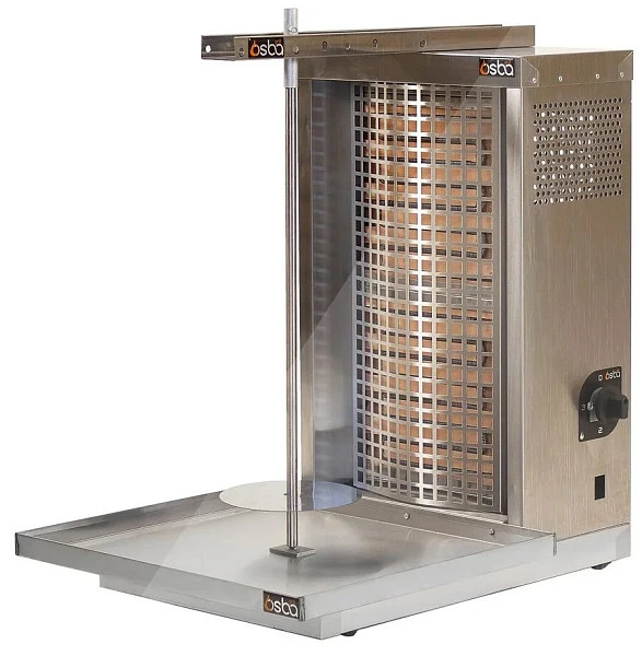 Гриль для шаурмы Osba 3.2K предназначен для обжарки мясных заготовок цилиндрической формы, которые размещаются на вертикальный вертел, обеспечивая равномерное приготовление. Гриль используется на кухнях различных заведений общественного питания: от ресторанов до точек быстрого питания, для приготовления мясной части блюда шаурма.