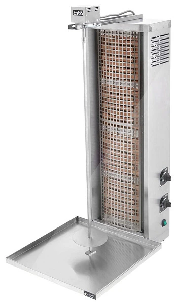 Гриль для шаурмы Osba 3.4KT предназначен для обжарки мясных заготовок цилиндрической формы, которые размещаются на вертикальный вертел, обеспечивая равномерное приготовление. Гриль используется на кухнях различных заведений общественного питания: от ресторанов до точек быстрого питания, для приготовления мясной части блюда шаурма.