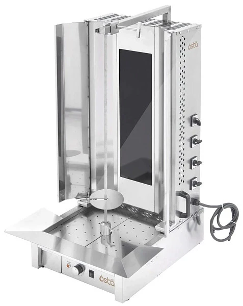 Гриль для шаурмы Osba ALT-04E используется на кухнях различных заведений общественного питания: от ресторанов до точек быстрого питания, для приготовления мясной части блюда шаурма. Гриль предназначен для обжарки мясных заготовок цилиндрической формы, которые размещаются на вертикальный вертел, обеспечивая равномерное приготовление.