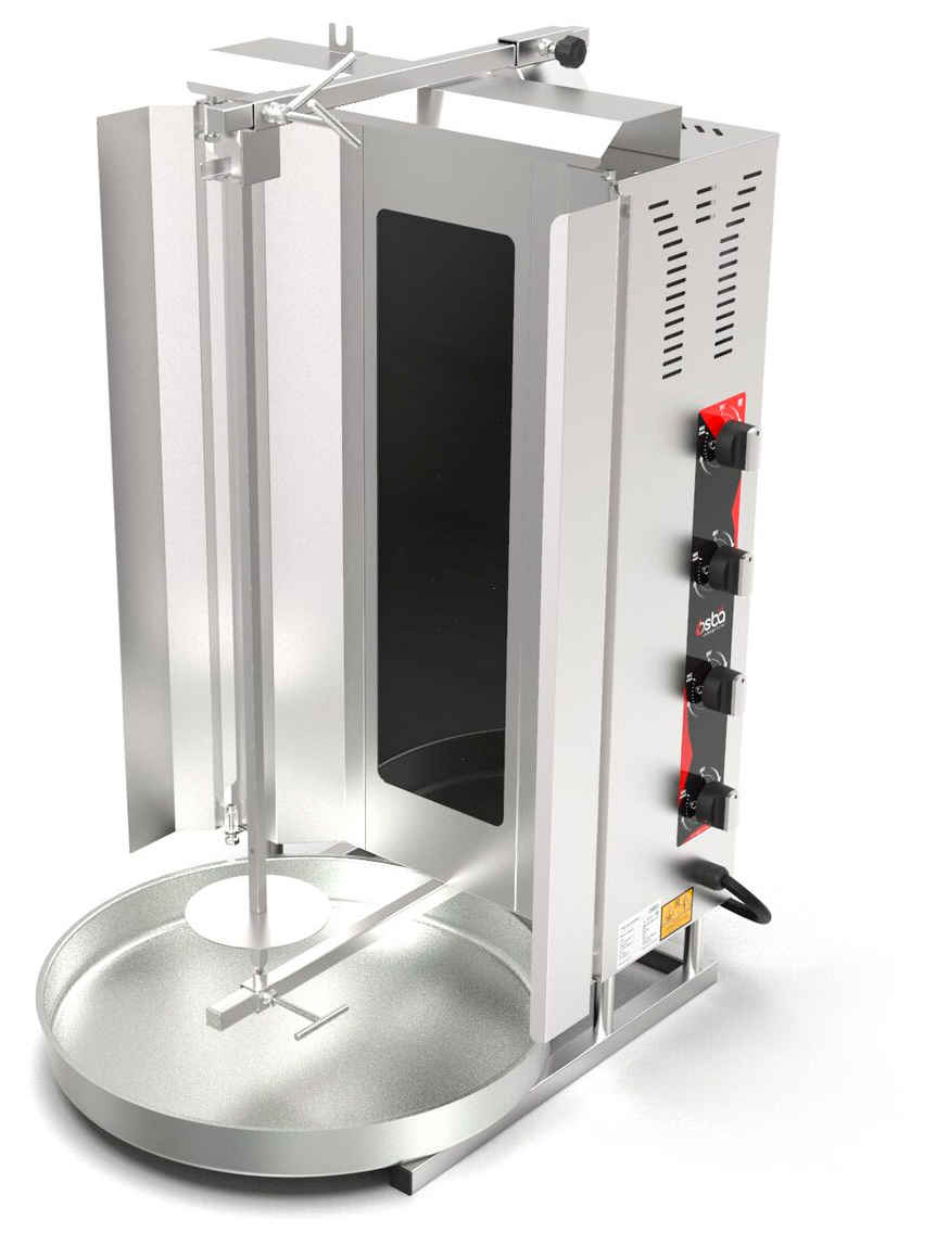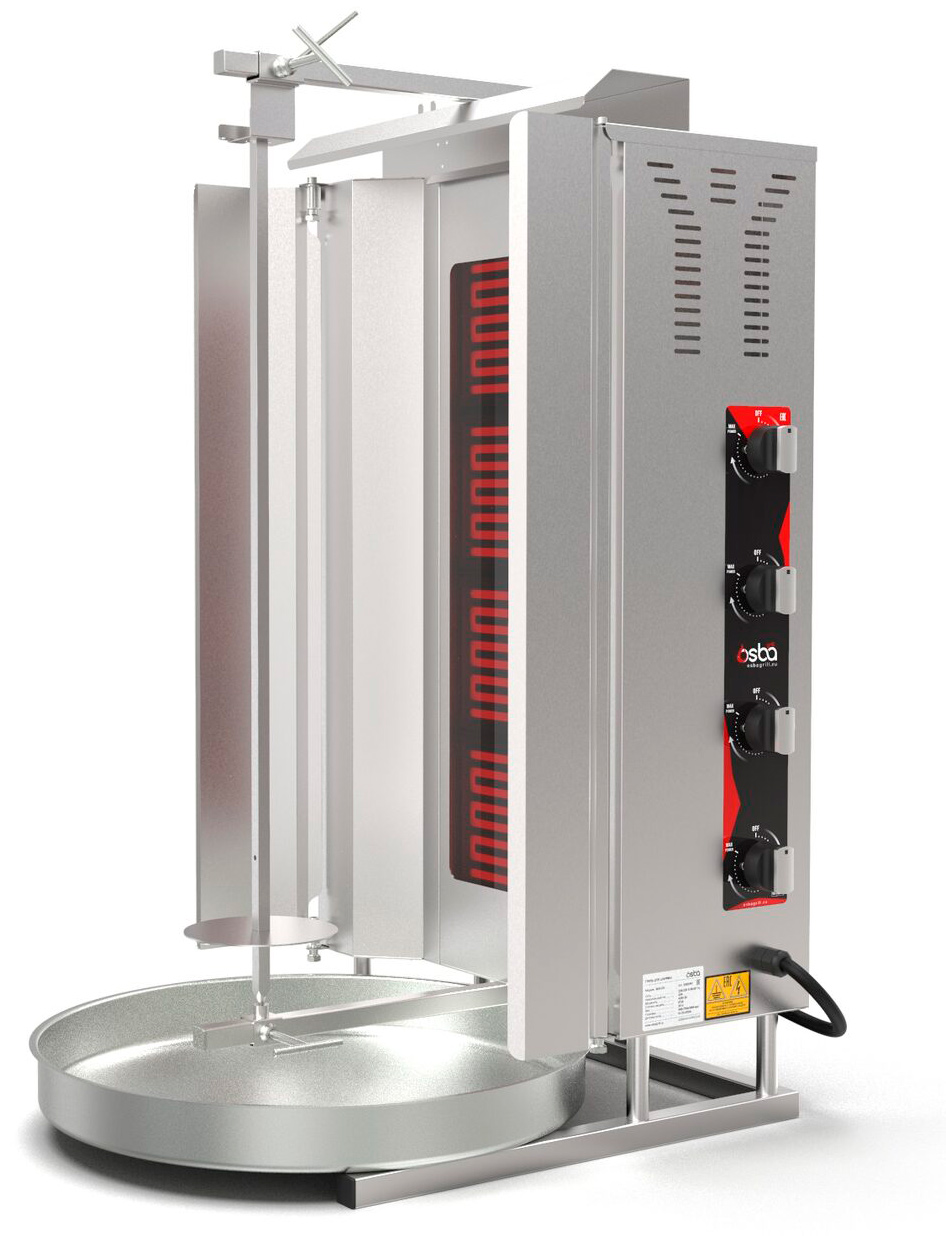 Гриль для шаурмы Osba SD16 предназначен для обжарки мясных заготовок цилиндрической формы, которые размещаются на вертикальный вертел, обеспечивая равномерное приготовление. Гриль используется на кухнях различных заведений общественного питания: от ресторанов до точек быстрого питания, для приготовления мясной части блюда шаурма.