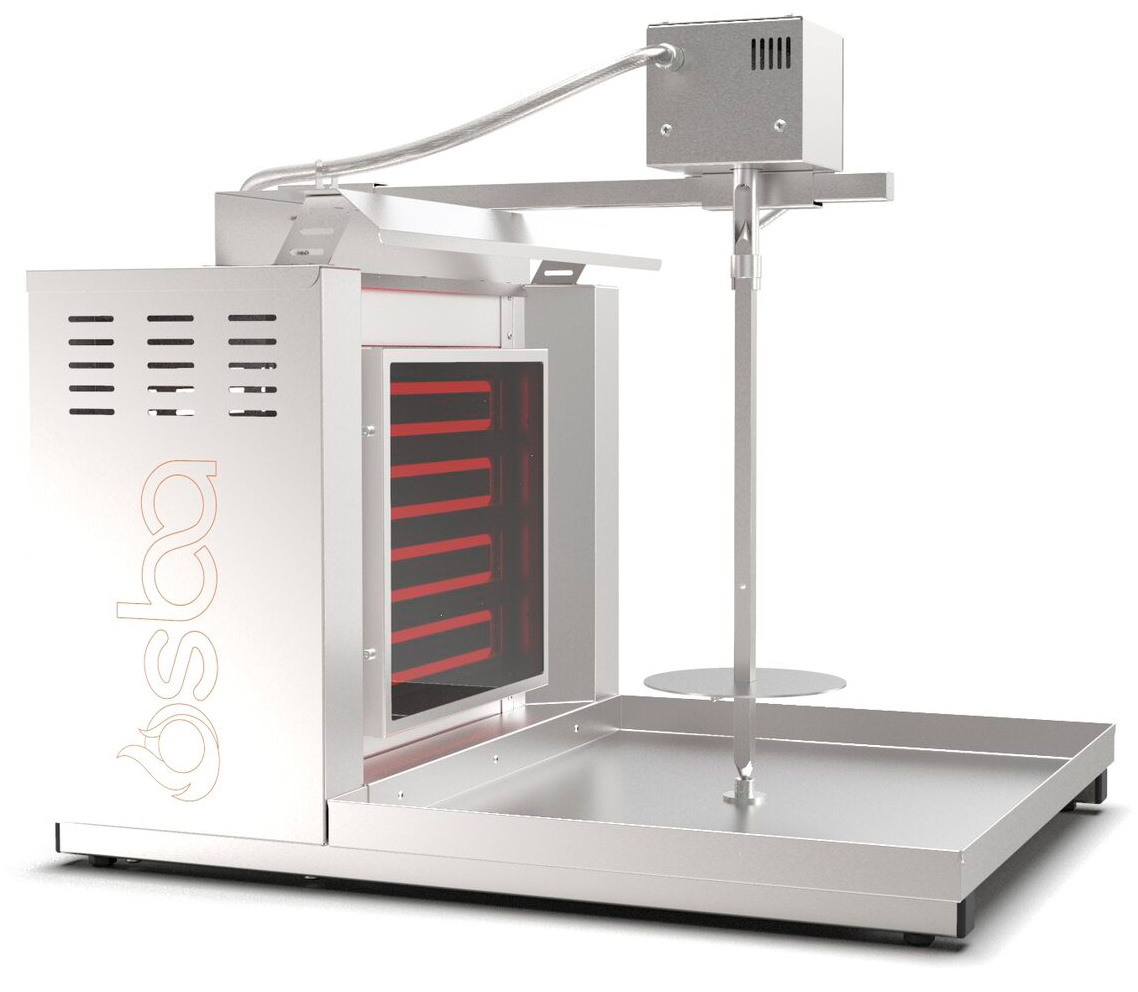 Гриль для шаурмы Osba SH1-CE предназначен для обжарки мясных заготовок цилиндрической формы, которые размещаются на вертикальный вертел, обеспечивая равномерное приготовление. Гриль используется на кухнях различных заведений общественного питания: от ресторанов до точек быстрого питания, для приготовления мясной части блюда шаурма.