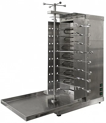 Гриль для шаурмы ПищТех ШШЭ-3 предназначена для быстрого приготовления мясной начинки для блюд «Шаверма» (разрезанная булочка с мелко нарезанным, поджаренным на установке мясом с приправой), а также для приготовления шашлыка на предприятиях общественного питания.
