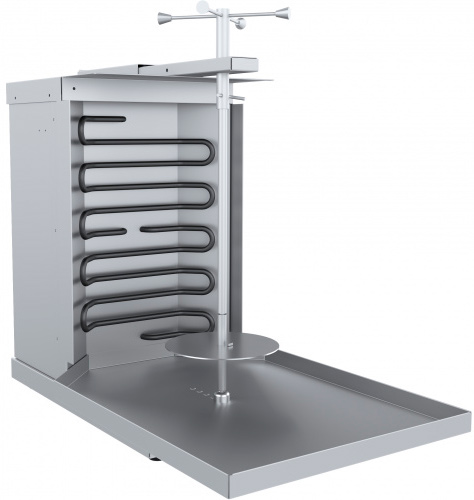 Гриль для шаурмы ПищТех ШШЭ-2-М предназначен для быстрого приготовления мясной начинки для блюд «Шаверма» (разрезанная булочка с мелко нарезанным, поджаренным на установке мясом с приправой) на предприятиях общественного питания.
