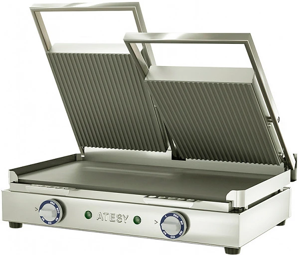 Atesy Маэстро ГК-2/3.1Г предназначен для быстрого приготовления и разогрева горячих блюд благодаря одновременному их поджариванию с двух сторон. С помощью данного аппарата можно приготовить куски мяса, рыбы, курицы, овощей, а также горячие бутерброды, сэндвичи, панини.