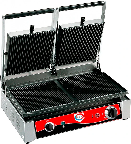 Гриль контактный Eletto R80 предназначен для быстрого обжаривания мяса, птицы, стейков, рыбы, овощей, а также для разогрева продуктов.