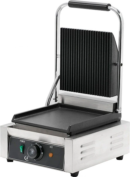 Гриль контактный Hurakan HKN-PE34L используется на предприятиях общественного питания и торговли для жарки мяса, птицы, рыбы, овощей, а также для приготовления стейков, гамбургеров и горячих сэндвичей