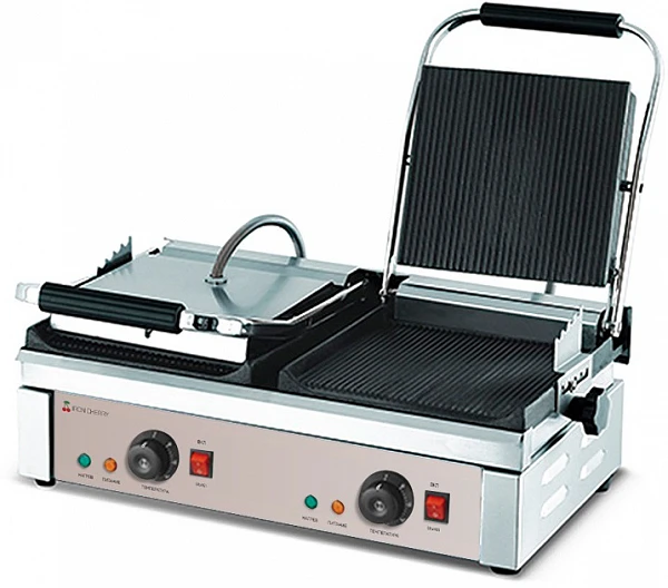 Профессиональный контактный гриль Iron Cherry Grill 610 используется для жарки мяса, птицы, рыбы, овощей, а также для приготовления стейков, гамбургеров и горячих сэндвичей на предприятиях общественного питания и торговли.