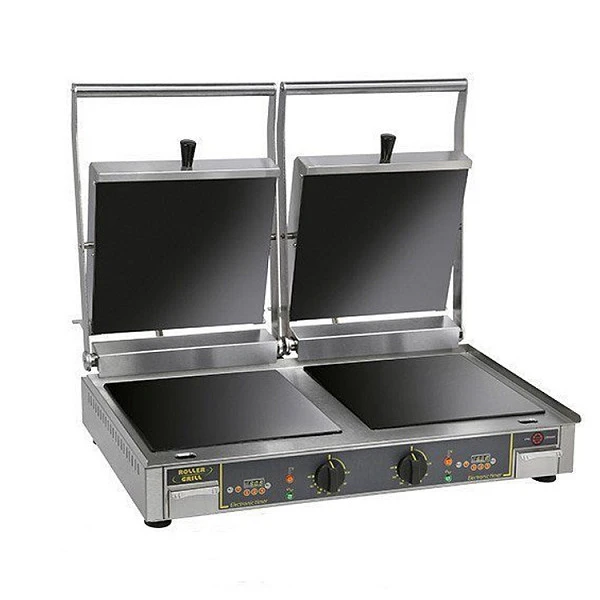 Гриль контактный Roller Grill GVD 335 L инфракрасный контактный гриль с двумя независимыми рабочими поверхностями из стеклокерамики предназначен для приготовления сэндвичей, тако, панини, стейков и других блюд, он удобен для установки в торговых центрах, на ж/д вокзалах, в аэропортах и т.д.