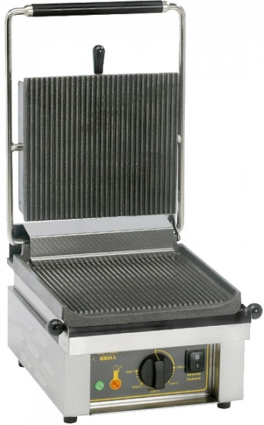 Гриль контактный Roller Grill Savoye R с рифлеными чугунными поверхностями предназначен для жарки мяса, птицы, рыбы, овощей, а также для приготовления стейков, гамбургеров и горячих сэндвичей на предприятиях общественного питания и торговли, специализирующихся на приготовлении фаст фуда.