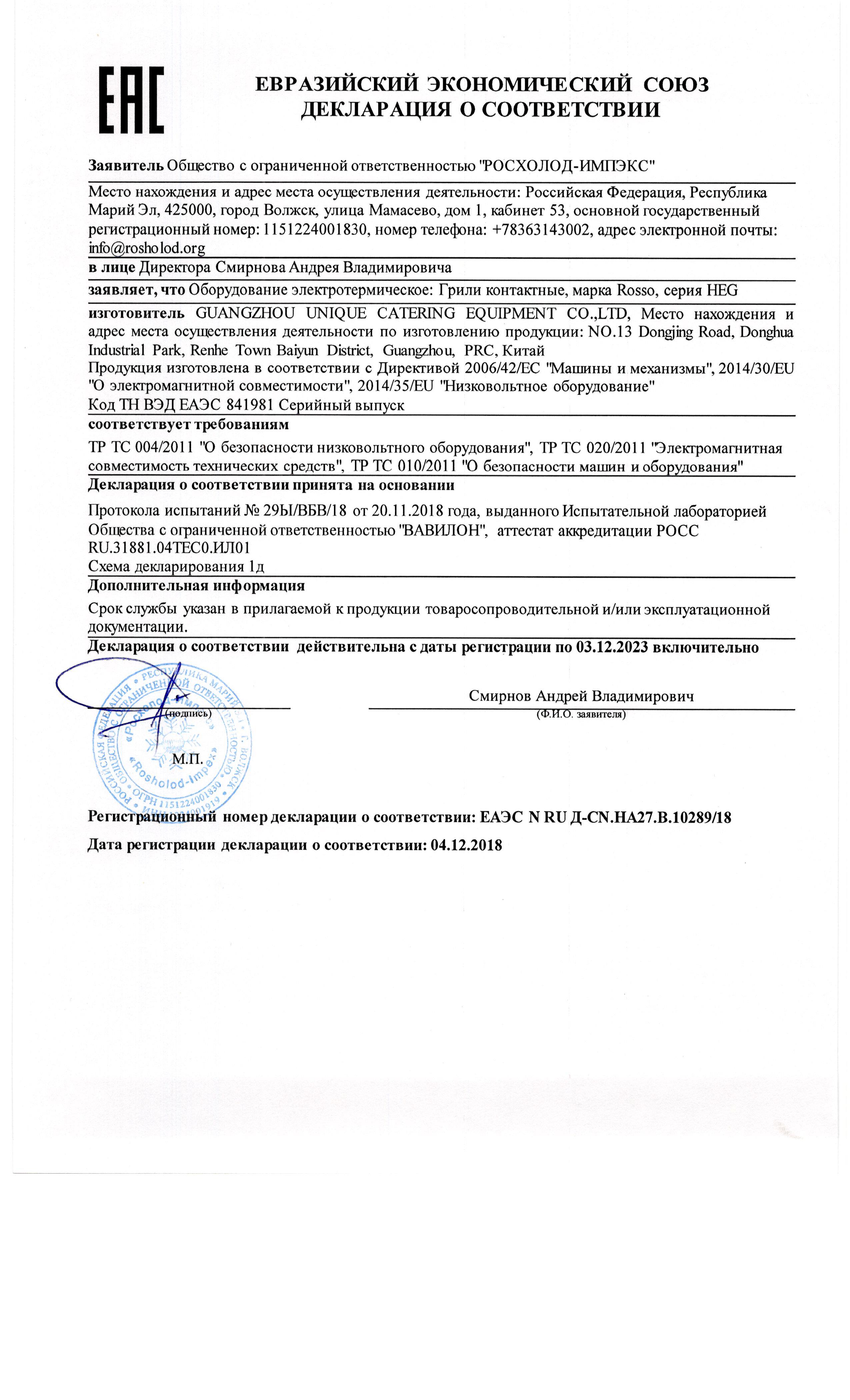 Гриль контактный Rosso HEG-811E используется на предприятиях общественного питания и торговли для жарки мяса, птицы, рыбы, овощей, а также для приготовления стейков, гамбургеров и горячих сэндвичей