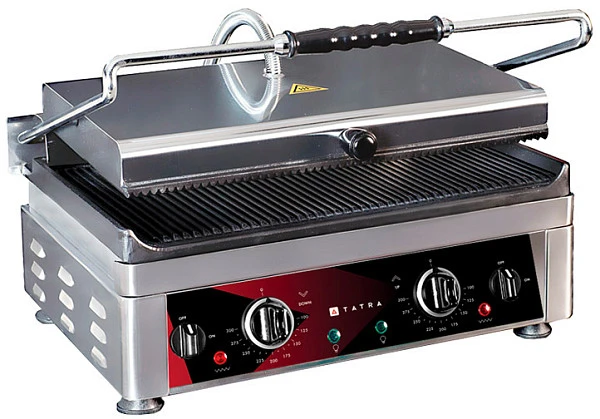Гриль контактный Tatra TCG 4527 RR DT предназначен для использования на предприятиях общественного питания и торговли для разогрева блюд из мяса, птицы и овощей, а также приготовления горячих бутербродов и сэндвичей.