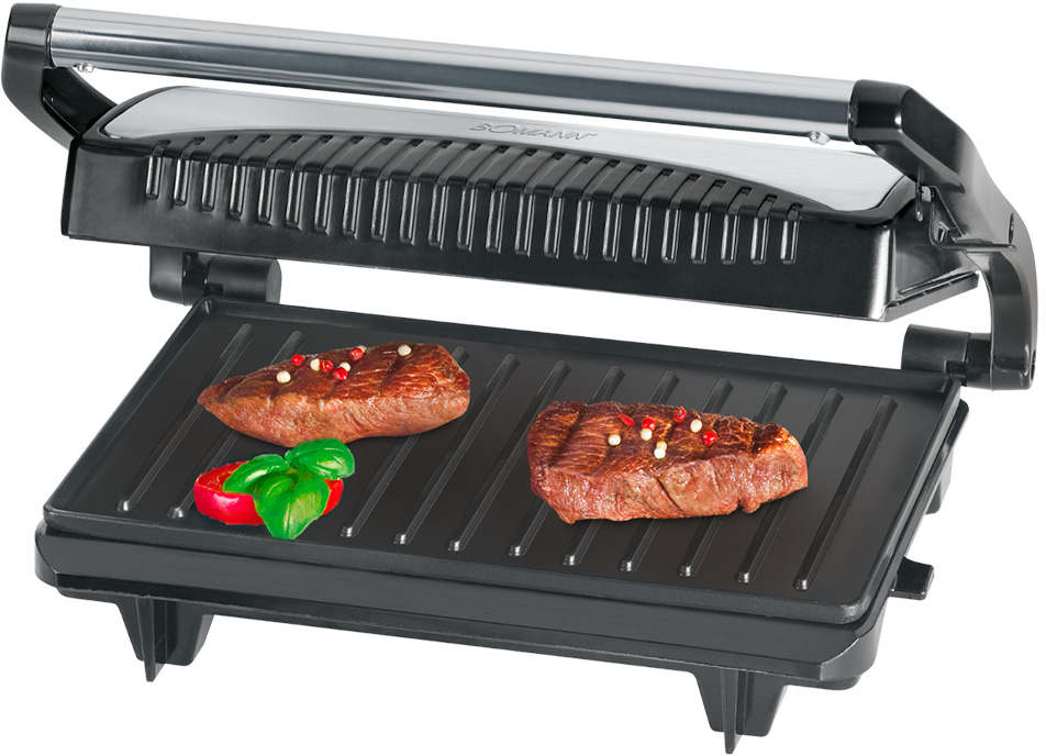Гриль прижимной Bomann 2251 СВ обеспечивает равномерное прожаривание продуктов без использования масла благодаря двум прижимным поверхностям. С помощью гриля можно готовить различные диетические блюда из мяса, рыбы или овощей.