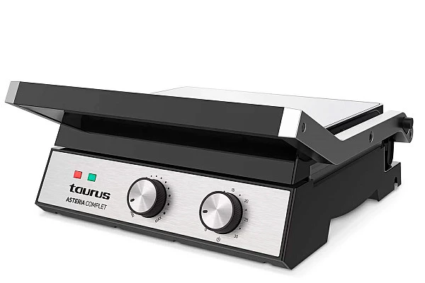 Гриль прижимной Taurus Asteria Complet обеспечивает равномерное прожаривание продуктов без использования масла благодаря двум прижимным поверхностям. С помощью гриля можно готовить различные диетические блюда из мяса, рыбы или овощей.