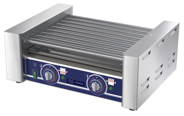 Гриль роликовый Kayman ГР-2-9 А предназначен для обжаривания и поддержания в горячем состоянии сосисок и котлет, используемых для приготовления хот-догов и бургеров в стационарных и мобильных точках общественного питания, в том числе и на АЗС.