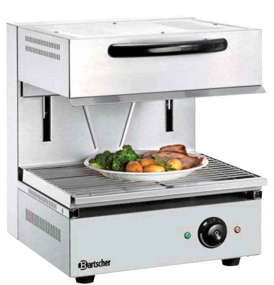 Гриль саламандра Bartscher 151.510 с регулируемым по высоте нагревательным элементом предназначен для обжаривания стейков и сосисок, приготовления сэндвичей, полуфабрикатов, подогрева булочек, гамбургеров, хот-догов на предприятиях общественного питания и торговли.