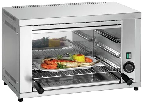 Гриль Salamander Bartscher Salamander S40 100524 с регулируемым по высоте нагревательным элементом предназначен для обжаривания стейков и сосисок, приготовления сэндвичей, полуфабрикатов, подогрева булочек, гамбургеров, хот-догов на предприятиях общественного питания и торговли.