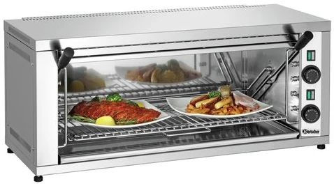 Гриль Salamander Bartscher Salamander S70 100528 с регулируемым по высоте нагревательным элементом предназначен для обжаривания стейков и сосисок, приготовления сэндвичей, полуфабрикатов, подогрева булочек, гамбургеров, хот-догов на предприятиях общественного питания и торговли.