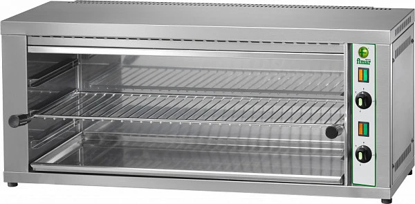 Fimar RS/70 - это бесконтактный гриль. Блюда в нем готовятся за счет нагрева воздуха в гриле, но не за счет нагрева от жарочной поверхности. Благодаря этому, блюда, приготовленные на гриле типа "Саламандр", сохраняют максимум полезных свойств, остаются сочными.