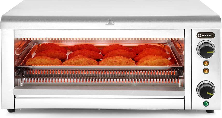 Гриль саламандра Hendi 264409 предназначен для создания аппетитной корочки, быстрого подогрева блюд, окончательной доготовки блюд с расплавленным сыром, мясом и рыбой.
