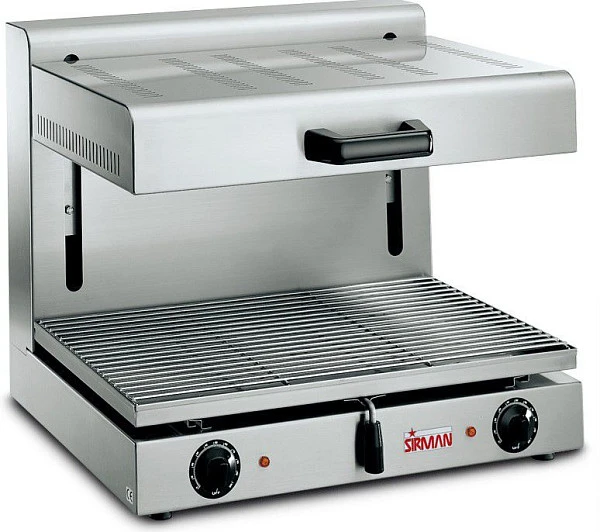 Гриль саламандра Sirman Mobile Pro 1/1 G из нержавеющей стали предназначен для приготовления, запекания различных блюд с образованием корочки. Верхняя часть регулируется по высоте для быстрого выпекания и минимальных теплопотерь. Главным преимуществом подобного оборудования является возможность придать готовому продукту румяную корочку. Данная модель имеет подвижный вертикальный нагревательный элемент, находящийся непосредственно над готовящимся продуктом, тем самым позволяя добиться запекания, а не жарки. Такое расположение идеально подходит для приготовления открытых горячих бутербродов, пицц, а также жульенов. Большая решетка для приготовления позволяет вмещать достаточное количество продуктов.