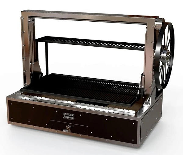 Механизм подъёма решетки-гриль над зоной очага дает возможность готовить на удобной температуре