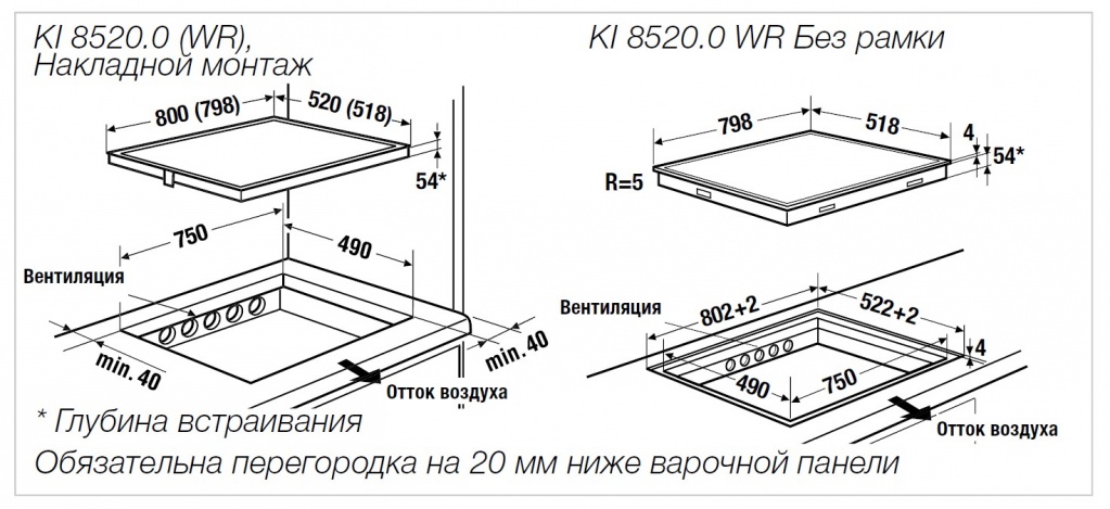 Размеры ниши для встраивания (Ш х Г): ≈ 750 х 490 мм