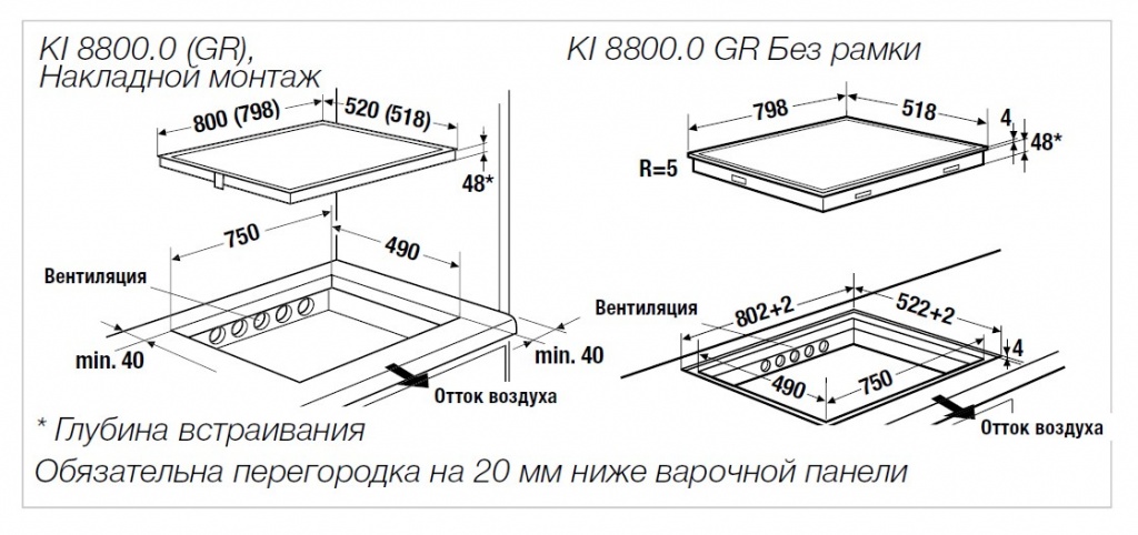 Размеры прибора (Ш х Г): ≈ 798 х 518 мм
