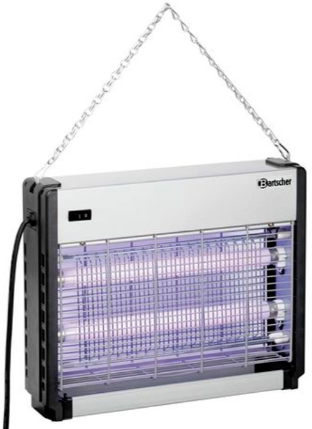 Инсектицидная лампа Bartscher IV-36 300314 используется на предприятиях общественного питания и торговли для привлечения невидимым излучением летающих насекомых, например, мух, мотыльков, комаров и прочих летающих вредителей, с последующим их уничтожением электрическим током с помощью находящихся под высоким напряжением металлических решеток.