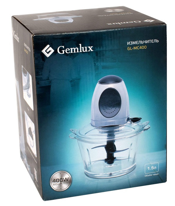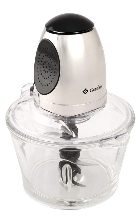 Измельчитель (мини-чоппер) Gemlux GL-MC400 с чашей объемом 1,5 л из прозрачной пластмассы и двухъярусным ножом предназначен для быстрого измельчения небольших количеств пищевых продуктов: зелени, овощей и фруктов, сырого и приготовленного мяса без костей, сухожилий и пленок и т.п. Моторный блок измельчителя изготовлен из нержавеющей стали и оснащен большой удобной кнопкой включения/выключения двигателя.