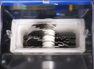 Во избежание разбрасывания льда при работе бункер закрывается откидной крышкой. Нажатие кнопки включения приводит к включению привода лезвия слайсера, строгающего лед.