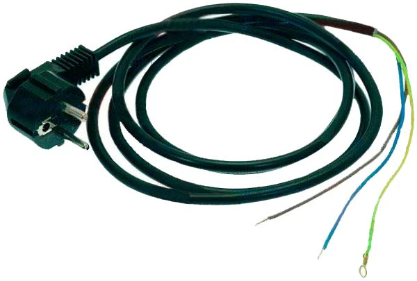 230 В. 3 провода диаметром - 1,5 мм., с вилкой SCHUKO. 2000 мм..