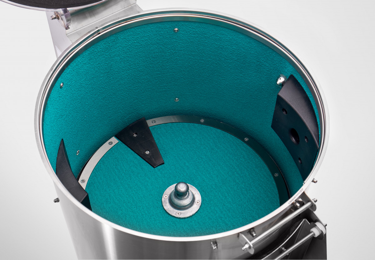 Абразивным материалом покрыт не только вращающийся диск, но и стенки рабочей камеры.