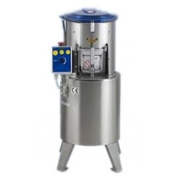 Показатель единовременной загрузки картофелечистки составляет 8 килограммов. Во время работы аппарата в емкость с картофелем непрерывно подается вода, которая мгновенно смывает с поверхности овощей очищенную кожуру. Данная модель картофелечистки характеризуется низким потреблением энергии. Корпус аппарата, а также рабочая камера изготовлены из нержавеющей стали. На фронтальной части расположен люк, предназначенный для выгрузки очищенных овощей в поставленную емкость. Картофелечистка оснащена устойчивыми ножками.