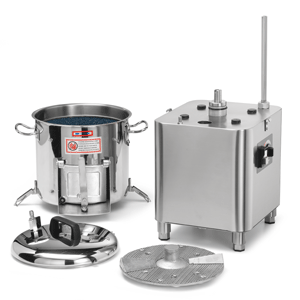Абразивные ёмкость и днище, легко снимаемые без инструментов, поддающиеся мытью в посудомоечной машине (запатентованная система).
