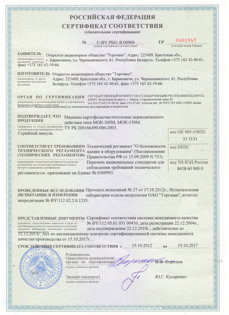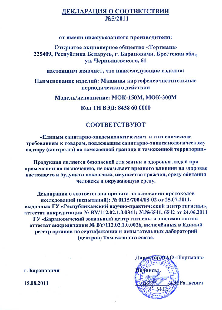 *Производительность машины проверяется при 90% полностью очищенного картофеля.