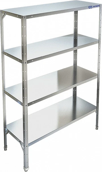 Четыре полки (нижняя усиленная креплениями) из коррозионностойкой стали.