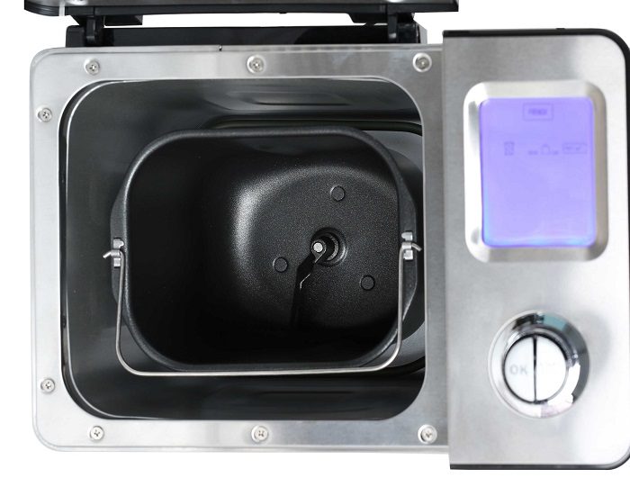 В комплект поставки входит: мерная ложка, мерный стакан, лопасть для замеса теста и дозатор, который позволяет в процессе замеса добавлять в тесто орехи и сухофрукты.