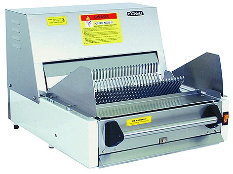 Хлеборезка Lozamet MKP-11.6 настольная предназначена для нарезки все видов хлеба от твердого черного до мягкого белого. Ножи из нержавеющей стали с легкостью входят в буханку и разрезают на ровные куски.