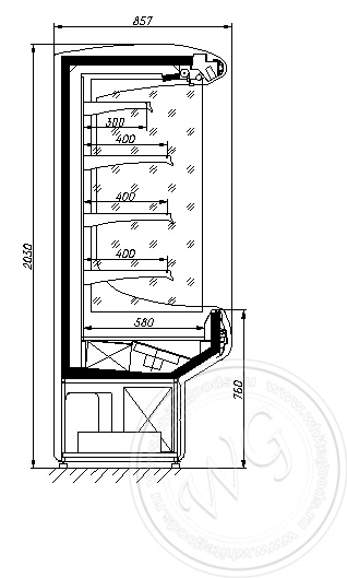 Полки витрины быстросъемные и могут устанавливаться в любой конфигурации самим пользователем.