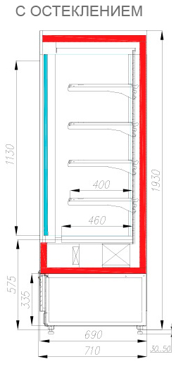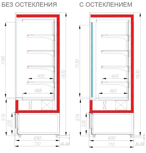 Глубина выкладки, мм 400 (488 - базовая полка)