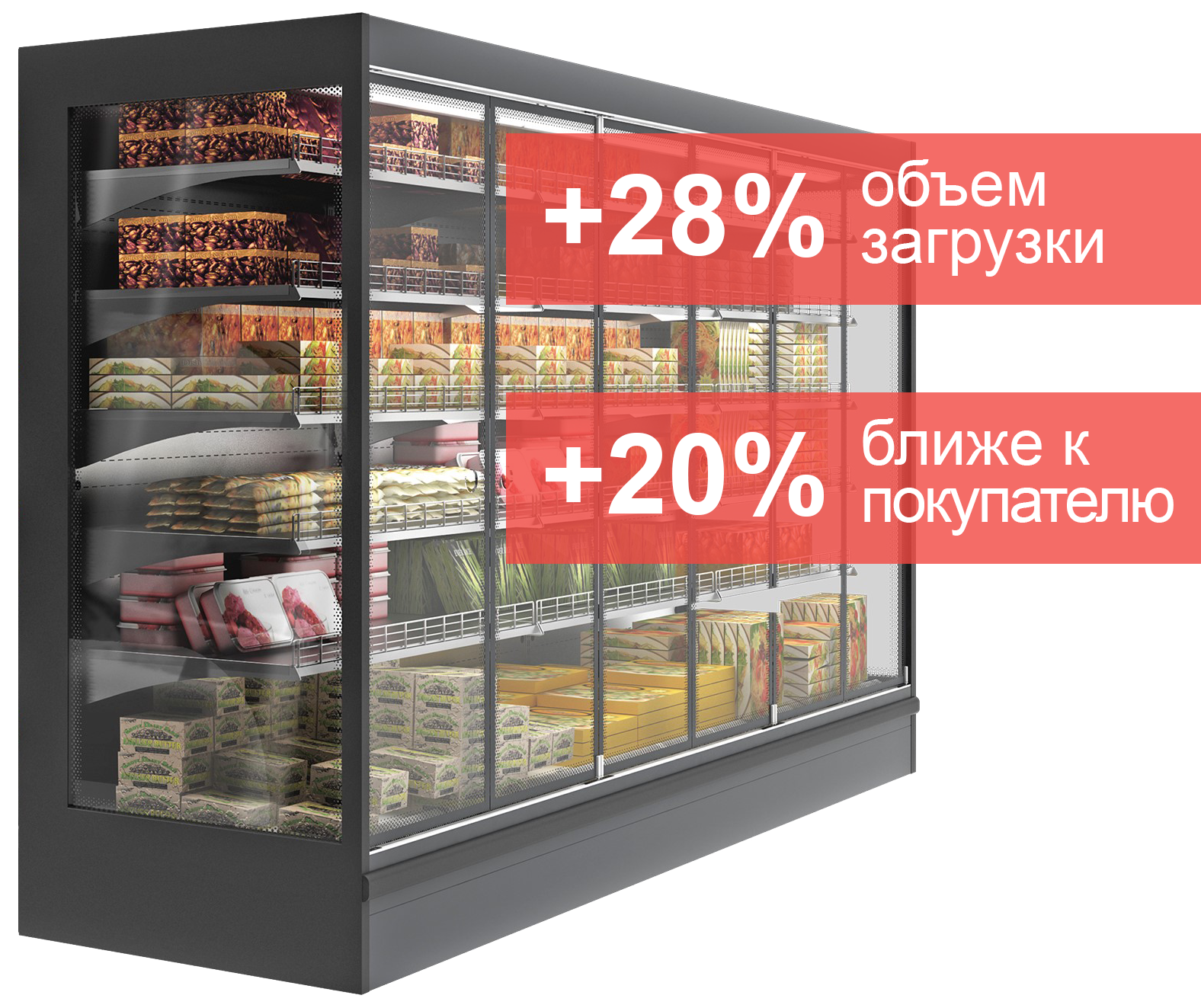 Высокая функциональность и точное соблюдение температурного режима обеспечивают надежную работу стеллажа и гарантируют сохранение свежести продуктов.