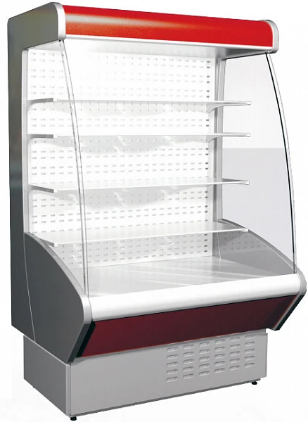 Холодильная горка Полюс Carboma ВХСп-1,3 отличается повышенной обзорностью продуктов за счет панорамных боковин и увеличенной площадью выкладки.