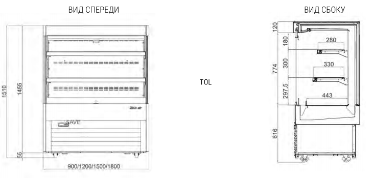 Технические характеристики холодильной горки Turbo Air TOL-1500