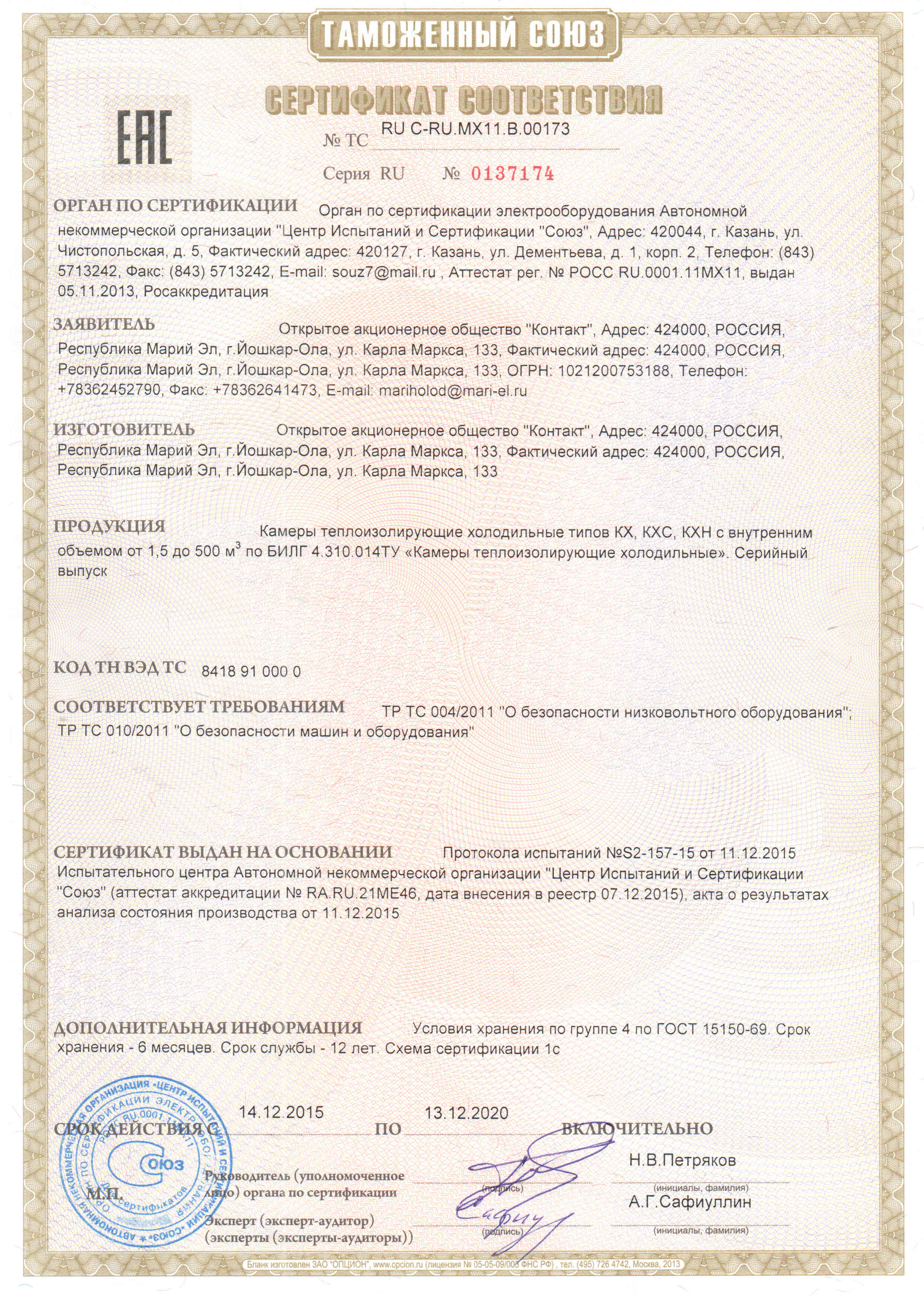Холодильная камера Марихолодмаш КХ-7,71 сборно-разборная из пенополиуретановых сэндвич-панелей в исполнении шип-паз толщиной 80мм.