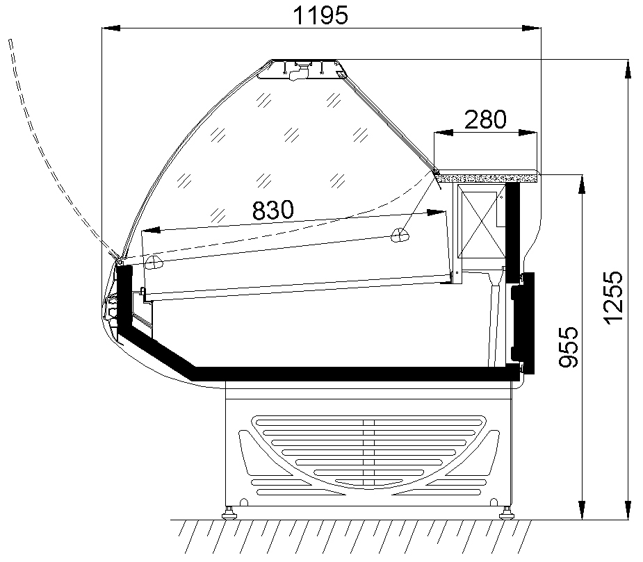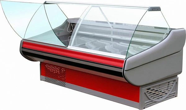 Холодильная витрина Ариада Титаниум с откидывающимся фронтальным стеклом и встроенным агрегатом - отличный вариант для новых продуктовых магазинов и супермаркетов.