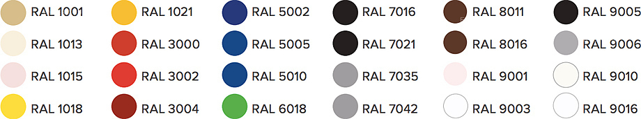 Фронтальные панели любого цвета из палитры RAL (без наценки):