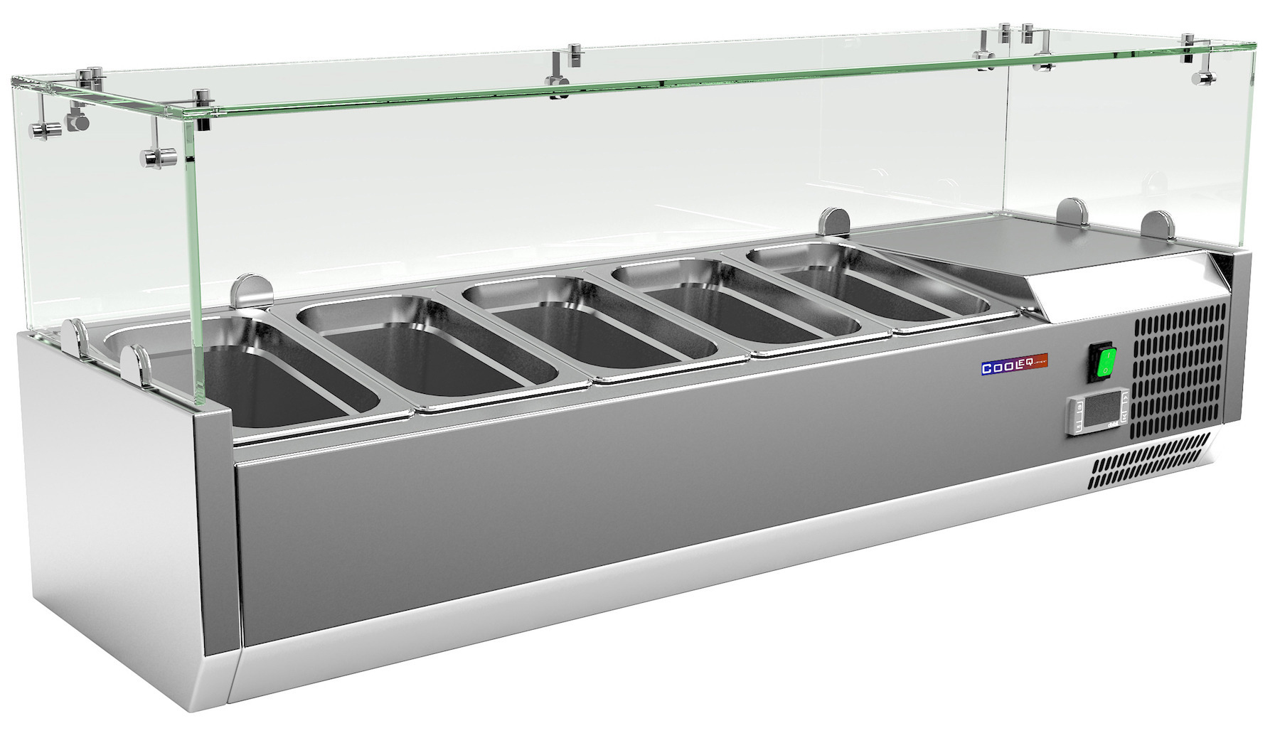 Холодильная витрина для ингредиентов Cooleq VRX 1200/330 предназначена для кратковременного хранения ингредиентов при приготовлении пиццы и салатов, а так же демонстрации и продажи предварительно охлажденных пищевых продуктов в гастрономических ёмкостях на предприятиях торговли и общественного питания.