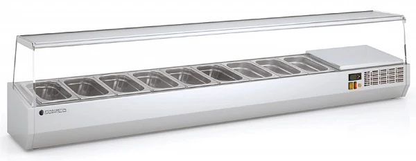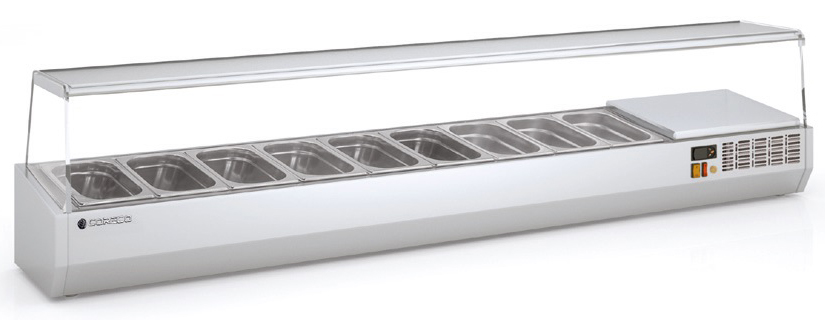 Холодильная витрина для ингредиентов Coreco EI135 предназначена для кратковременного хранения ингредиентов при приготовлении пиццы и салатов, а так же демонстрации и продажи предварительно охлажденных пищевых продуктов в гастрономических ёмкостях на предприятиях торговли и общественного питания.