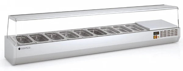Холодильная витрина для ингредиентов Coreco EI180 предназначена для кратковременного хранения ингредиентов при приготовлении пиццы и салатов, а так же демонстрации и продажи предварительно охлажденных пищевых продуктов в гастрономических ёмкостях на предприятиях торговли и общественного питания.